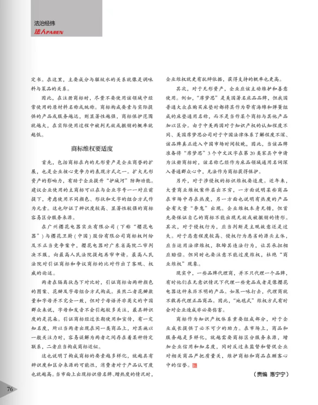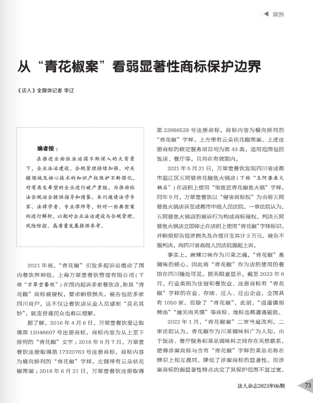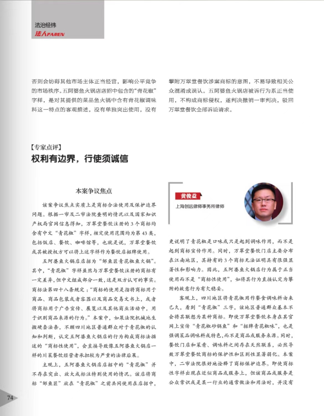 宁德辉知简讯 | 辉知队黄俊益律师应“法治日报”旗下杂志邀请,就“青花椒”案发表专家点评