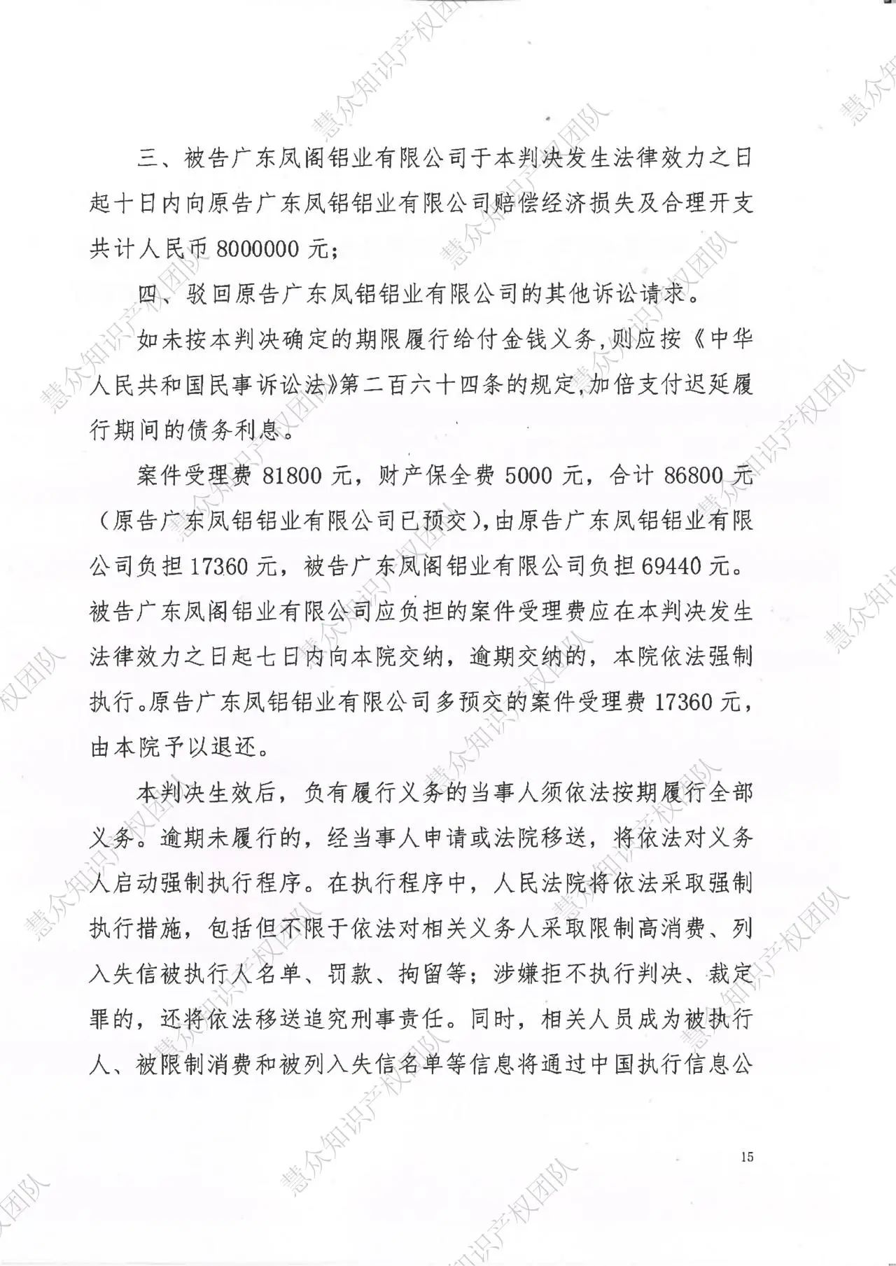 宁德判赔800万!辉知队代理“凤铝”商标维权案胜诉